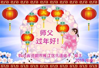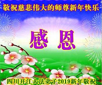 我們是大陸四川省成都市溫江區一學法小組全體大法弟子,在2019年(己亥)來臨之際,全體大法弟子衷心向慈悲偉大的師尊問好!師父過年好!新年快樂!