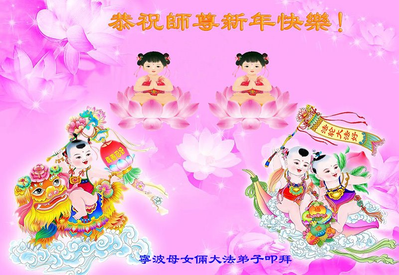 浙江省寧波母女倆大法弟子恭祝慈悲偉大的師尊新年好!