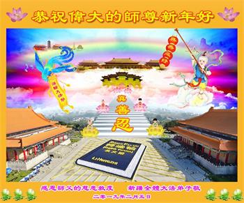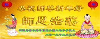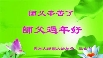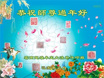 大陸一全家大法弟子及家屬恭祝師尊新年快樂!