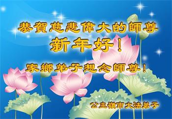 吉林省公主嶺市大法弟子恭祝慈悲、偉大的師父新年好!