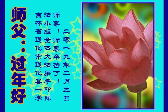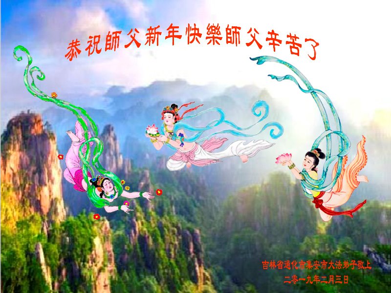 又縫歲末,懷著對慈悲偉大師尊的思念,我代表我全家多位大法弟子,向偉大的師尊道聲「新年好!」為救各界蒼生,您操碎了心,有很多是弟子無法知道的,所以在新的一年裏,我們全家同修更要珍惜師尊用巨大承受延續來的寶貴時間,做好三件事,多學法,學好法,多救眾生,以報師恩,圓滿隨師還。