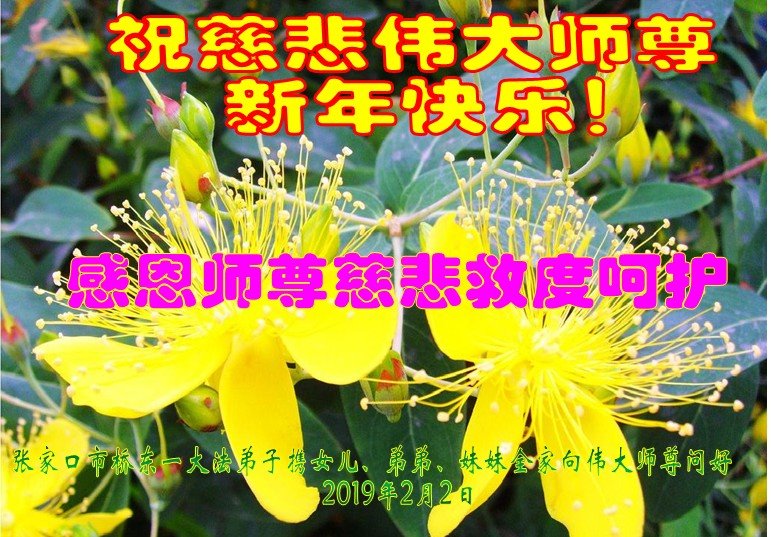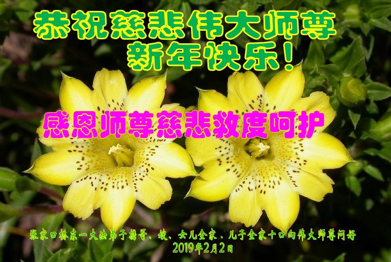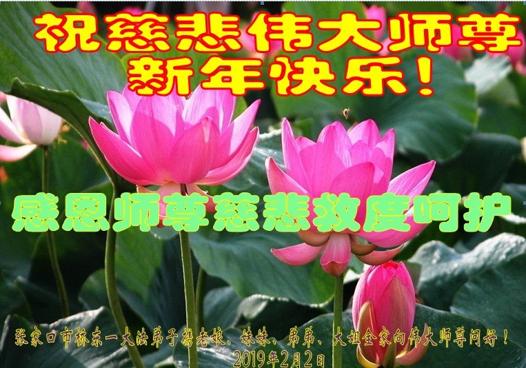 在2019新年來臨之際弟子攜帶全家謝謝師父的慈悲救度!在新的一年弟子一定多學法、實修自己,走好師父給安排的路,跟師父回家。再一次恭祝師父新年快樂!