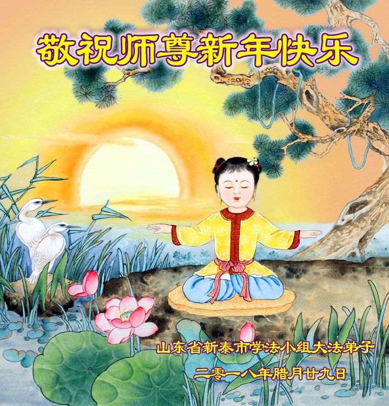山東省泰安市新泰學法小組大法弟子敬祝師尊新年快樂!