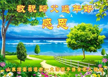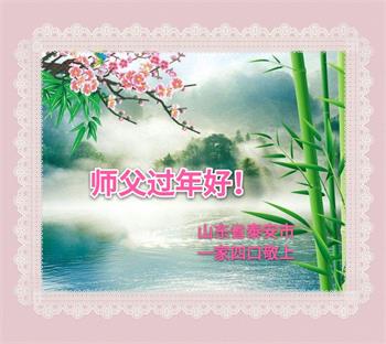 我們全家人虔誠的給師父拜年!我們一家七口人,上至八十六歲的老公爹,下至三歲的小外孫,都知道大法好,小外孫每天都念「法輪大法好」「真善忍好」「師父好」。全家人都支持大法,家庭和睦,我們生活的幸福快樂!