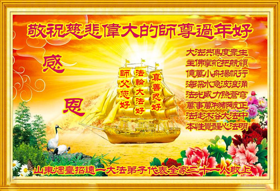 傳統新年即將來臨,我們藉此節日之際給師尊拜年!我們懷著感恩的心情,雙手合十,齊聲向慈悲偉大的師尊獻上最誠摯的祝願,恭祝師尊過年好!法輪大法好!真善忍好!師尊您辛苦了。