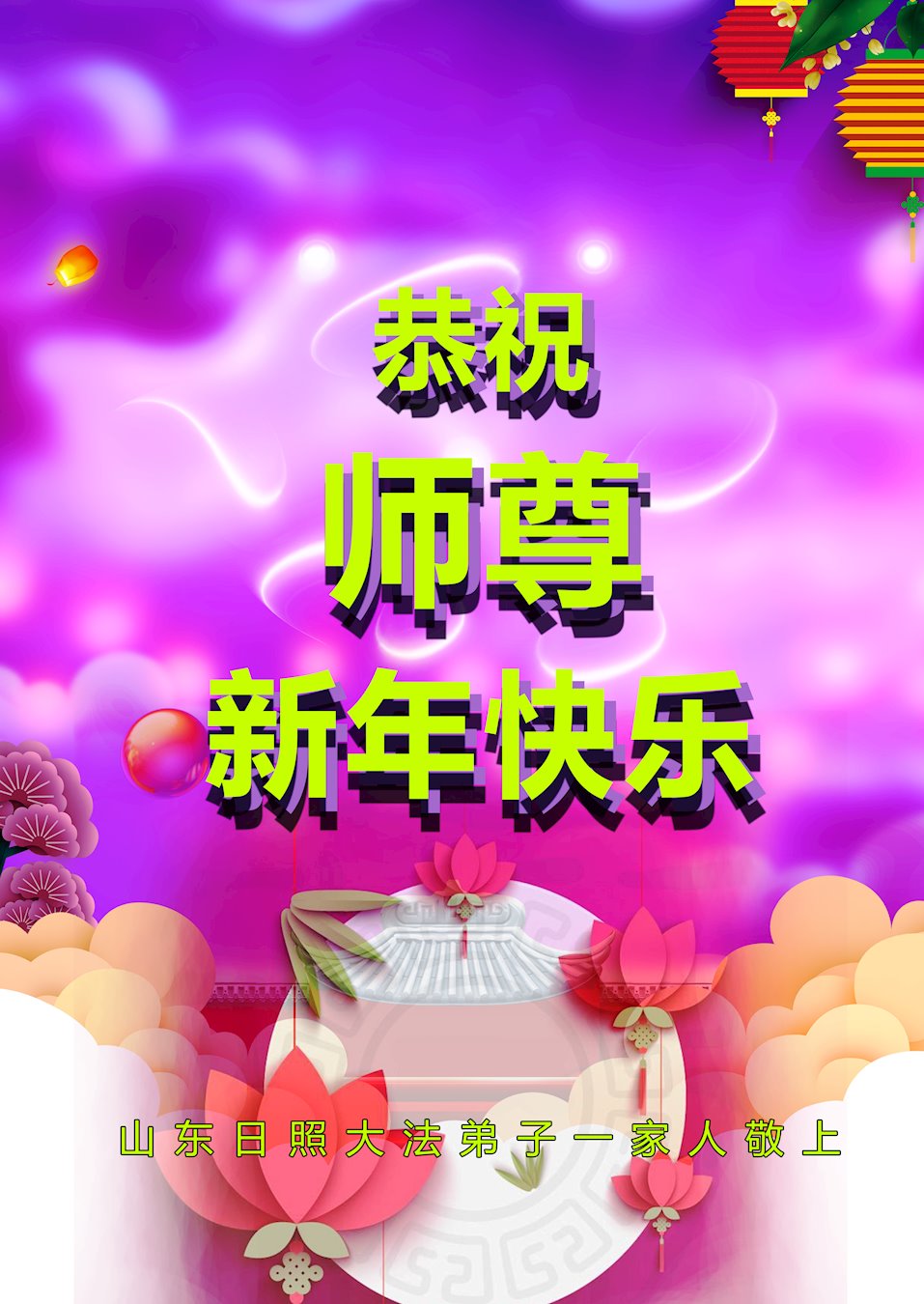 山東某地食品藥品監督管理局工作的大法弟子與母親同修攜家人給偉大慈悲的師尊拜年!恭祝師尊新年快樂!