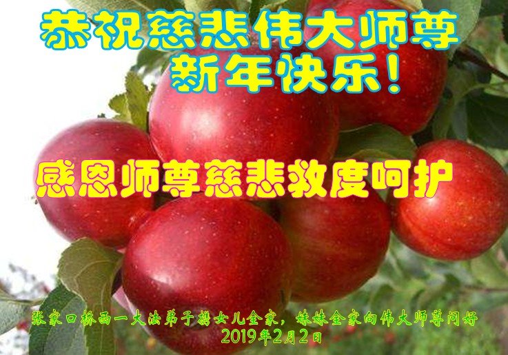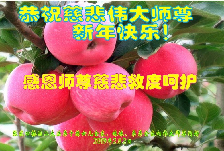 河北省張家口橋西一大法弟子攜女兒全家、妹妹、弟弟全家向偉大師尊問好:恭祝師尊新年快樂!