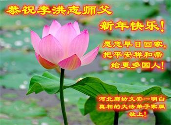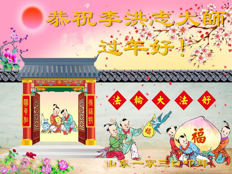 光陰似箭,日月如梭。轉瞬金狗飛流逝去,金豬急馳而來。在此我們全家人滿懷無比誠摯的心情給我們無限敬仰的李大師拜年,恭祝大師新年快樂!萬事如意!感謝大師對我們的恩澤!佛恩浩蕩,福澤穹宇。您的大恩大德,我們永世不忘!「法輪大法好,真善忍好!」這是我們天天必念的真經。我們朝朝暮暮都在盼望大師早日歸來,我們真的很想念您!我們期待著那一天早日到來。再次叩拜大師!合十