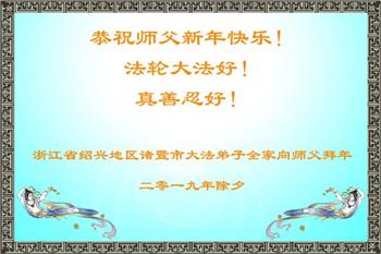 寧波市海曙區二個學法小組全體大法弟子恭祝師尊新年快樂!我們會牢記師尊教誨,做好三件事,抓緊時間多救人,同時修好自己,兌現自己的史前誓約,圓滿隨師還。