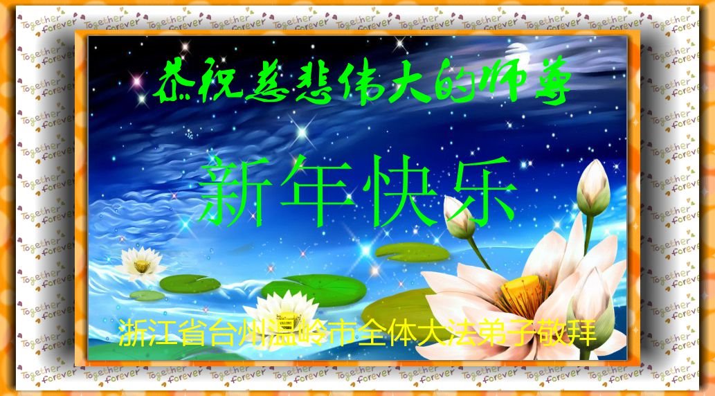 在這萬古不遇轉瞬即逝的助師正法、救度眾生的正法修煉路上,在這最後珍貴的時間裏,我們一定不辜負師父對我們的期望,學好法、向內找,修好自己,同時做好三件事。圓滿隨師還。我們盼望著早日見到師父!再一次恭祝師尊新年快樂!
