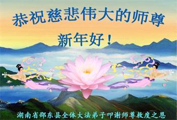 湖南岳陽市君山區全體大法弟子恭祝慈悲偉大的師尊過年快樂!