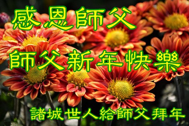 再過幾天就是中國傳統節日----新年了。弟子遙拜師尊過年好!還有我們對師尊的思念,感恩您對弟子的加持和保護,默默的用心問候吧!師尊您辛苦了!