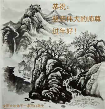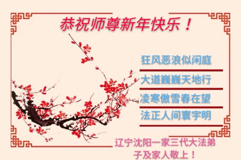 瀋陽市蘇家屯區倆城鎮大法弟子給慈悲偉大的師尊拜年!師尊過年好! 感謝師尊的慈悲苦度,弟子們不會說感謝的話,只有精進,再精進,越到最最後越精進!弟子跪拜師尊!