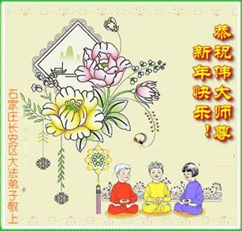 我是一九九六年喜得大法的。二十多年來,感恩師尊的慈悲保護。我要更加精進實修、多救人,讓師尊多一些欣慰!我沒有修煉的老伴、兒子一家三口、及姑姑、叔叔、嬸嬸囑咐我過大年一定代他們給師尊拜年!他們發自內心的祝師父新年快樂!