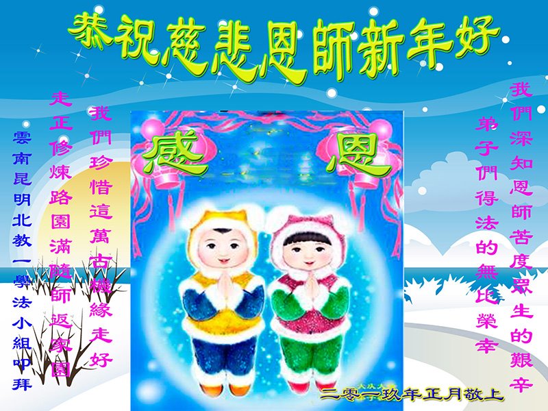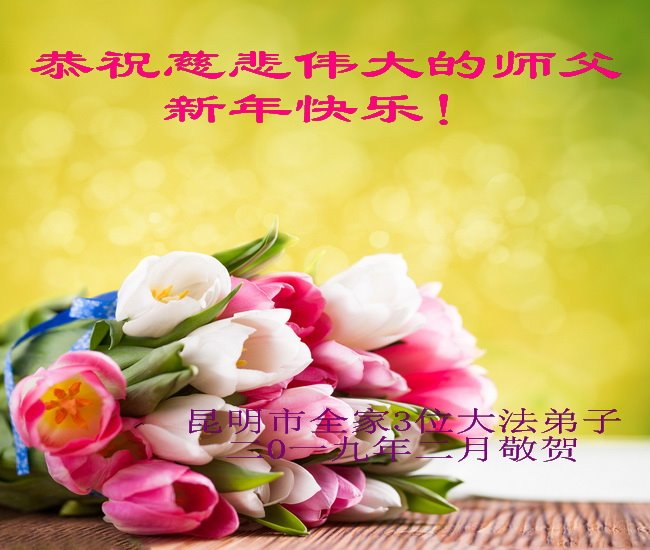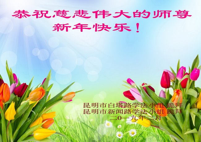 雲南省昆明市兩個學法小組大法弟子恭祝慈悲偉大的師尊新年快樂!