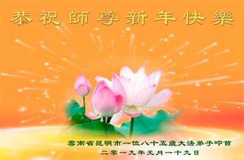 雲南省昆明市一位八十五歲大法弟子恭祝師尊新年快樂!