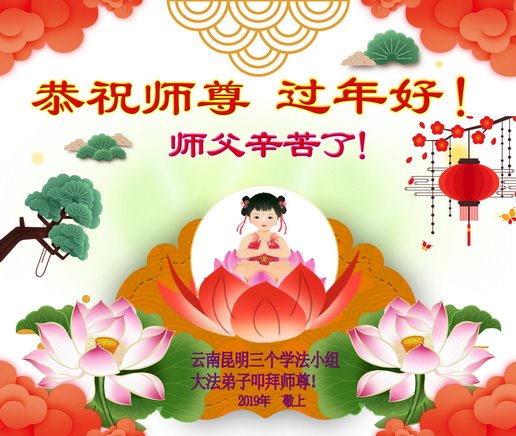 雲南省雲南昆明三個學法小組的大法弟子恭祝慈悲偉大的師尊過年快樂!師尊辛苦了!