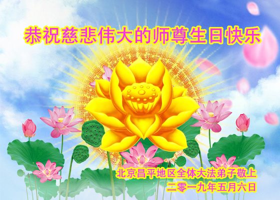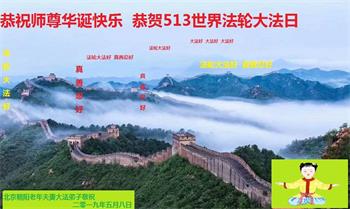 喜迎偉大師父華誕,法輪大法洪傳二十七週年,第二十屆五一三「世界法輪大法」日到來,北京朝陽區一名大法弟子衷心恭祝偉大師父生日快樂!拜謝師父的救度洪恩!
