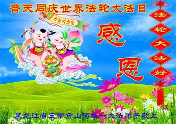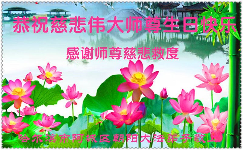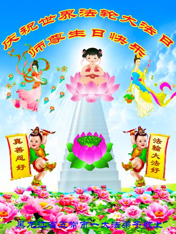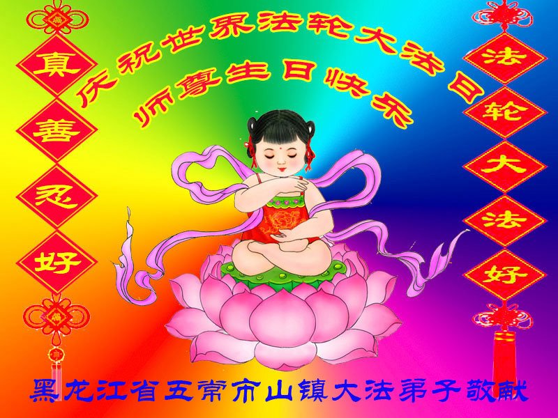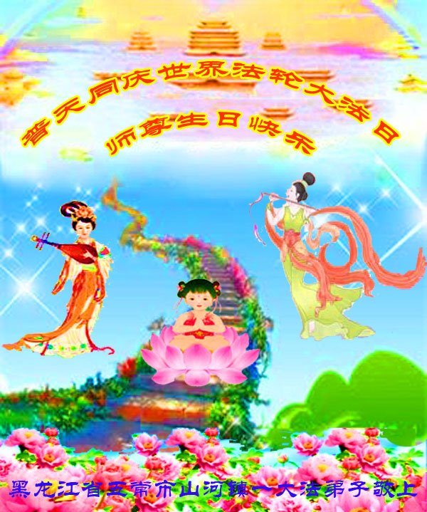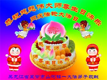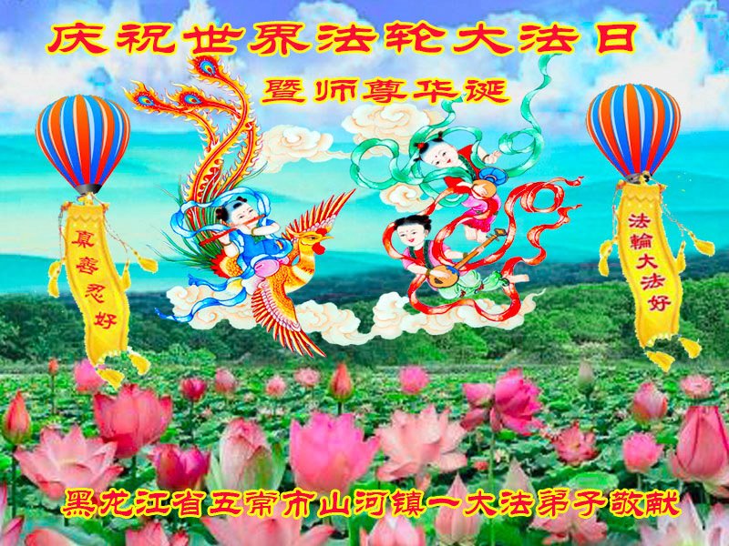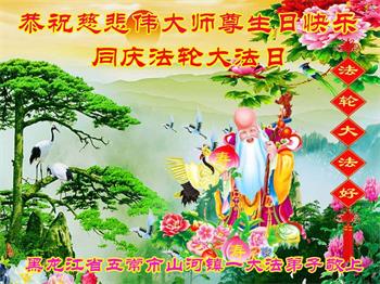 黑龍江省哈爾濱市五常市山河鎮一大法弟子恭賀世界法輪大法日暨師尊華誕!