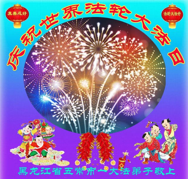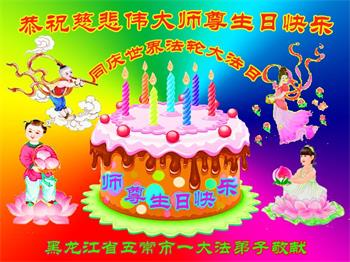 黑龍江省哈爾濱市五常市一大法弟子恭賀世界法輪大法日暨師尊華誕!