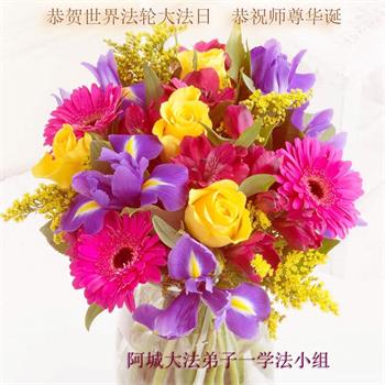 恭祝恩師生日快樂!熱烈祝賀五一三世界法輪大法日!感謝恩師慈悲救度!做好三件事,跟上正法進程,精進實修,向內找修好自己,為別人著想,救度眾生,跟師父回家。叩拜恩師!阿城一學法小組大法弟子敬上!