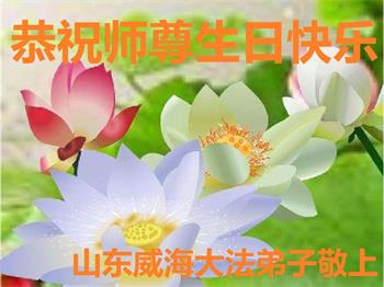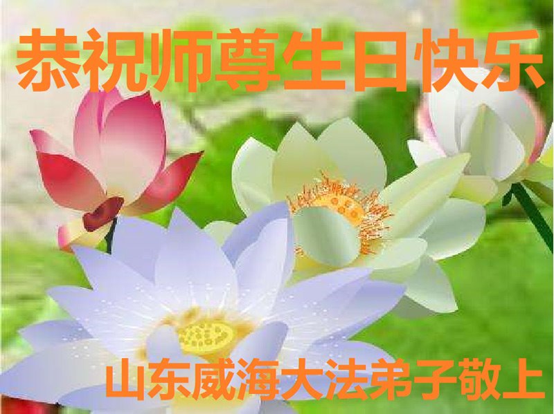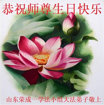 煙台一學法小組及家人恭祝偉大、慈悲、神聖的師尊生日快樂!恭賀二零一九年五月十三日世界法輪大法日!