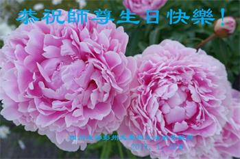 在這全球共祝共慶共賀法輪大法洪傳二十週年、恭祝偉大慈悲的師父生日快樂之時,我們怎麼能忘卻師父為拯救宇宙、救度眾生,歷經千辛萬苦;為創亙古之偉業、立千秋萬代之風範,把法輪大法從東方傳到了西方,把宇宙大法的真理撒遍全球,讓真、善、忍的美好喚醒眾生。使人類都沐浴在「法輪大法的佛光裏」。人類無不感謝師父的慈悲救度,無不吟誦師父的豐功偉績!