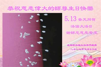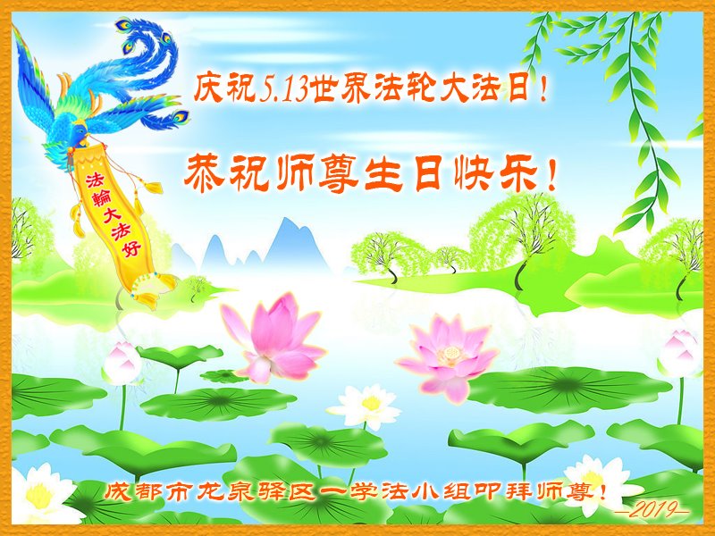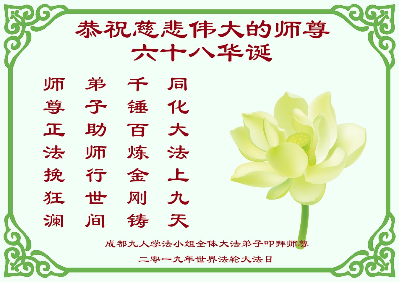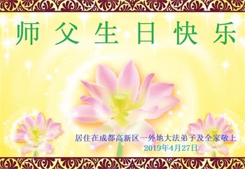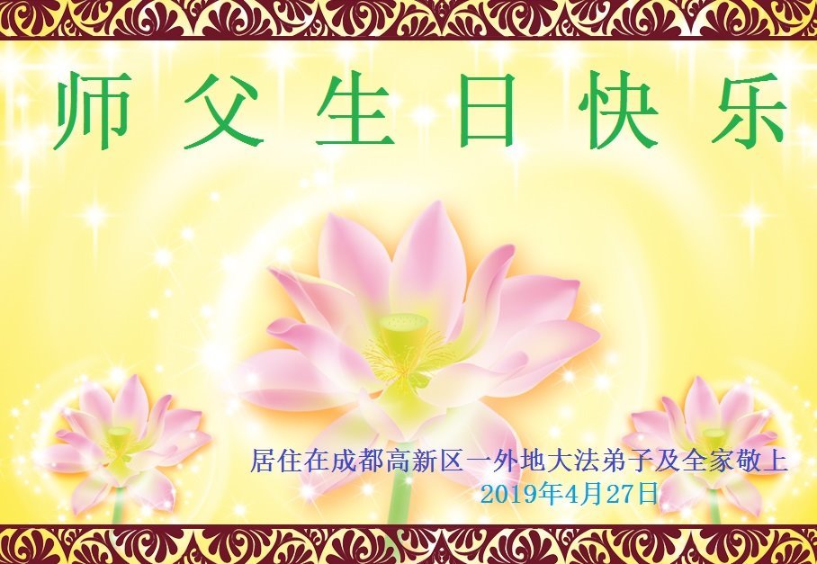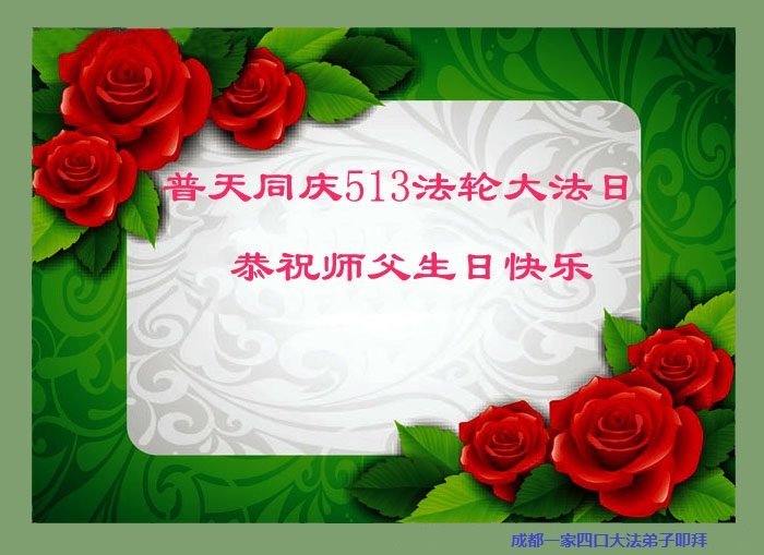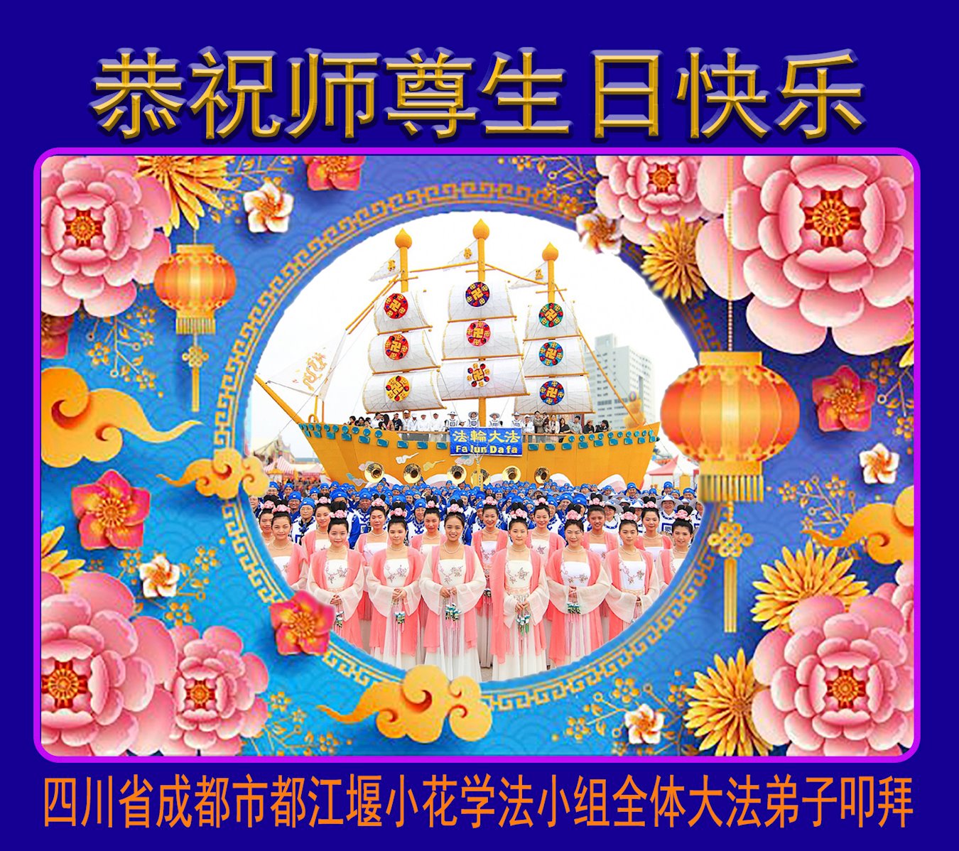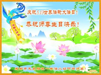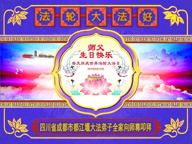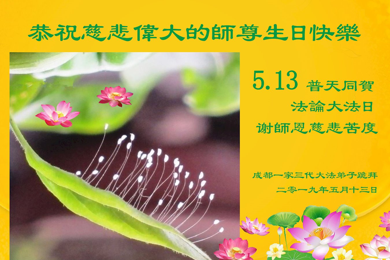 四川成都市一家四人大法弟子恭祝師尊生日快樂!