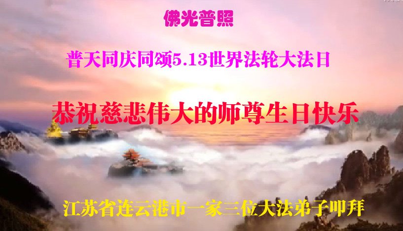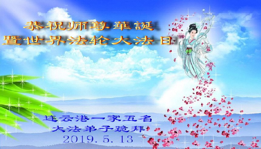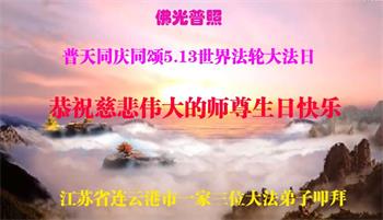 江蘇省連雲港一家五名大法弟子恭祝師尊華誕暨世界法輪大法日!感謝師尊救度之恩!