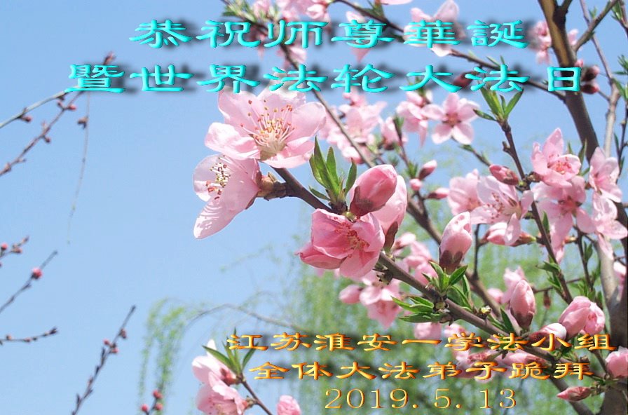 江蘇淮安一學法小組全體大法弟子恭祝師尊華誕暨世界法輪大法日!感謝師尊救度之恩!