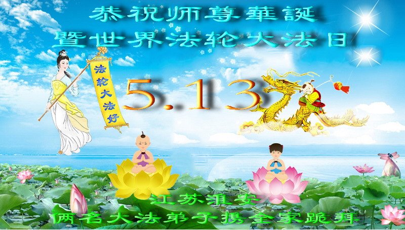 江蘇淮安全體大法弟子恭祝師尊華誕暨世界法輪大法日!感謝師尊救度之恩!