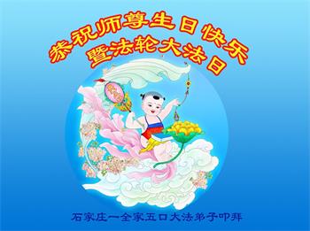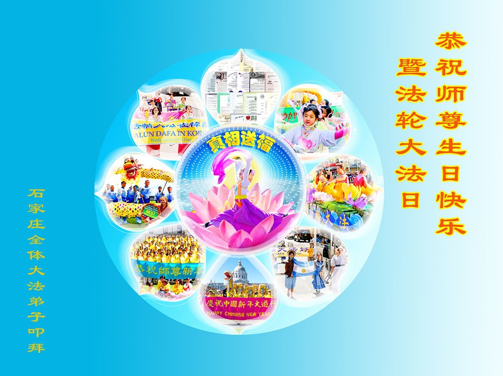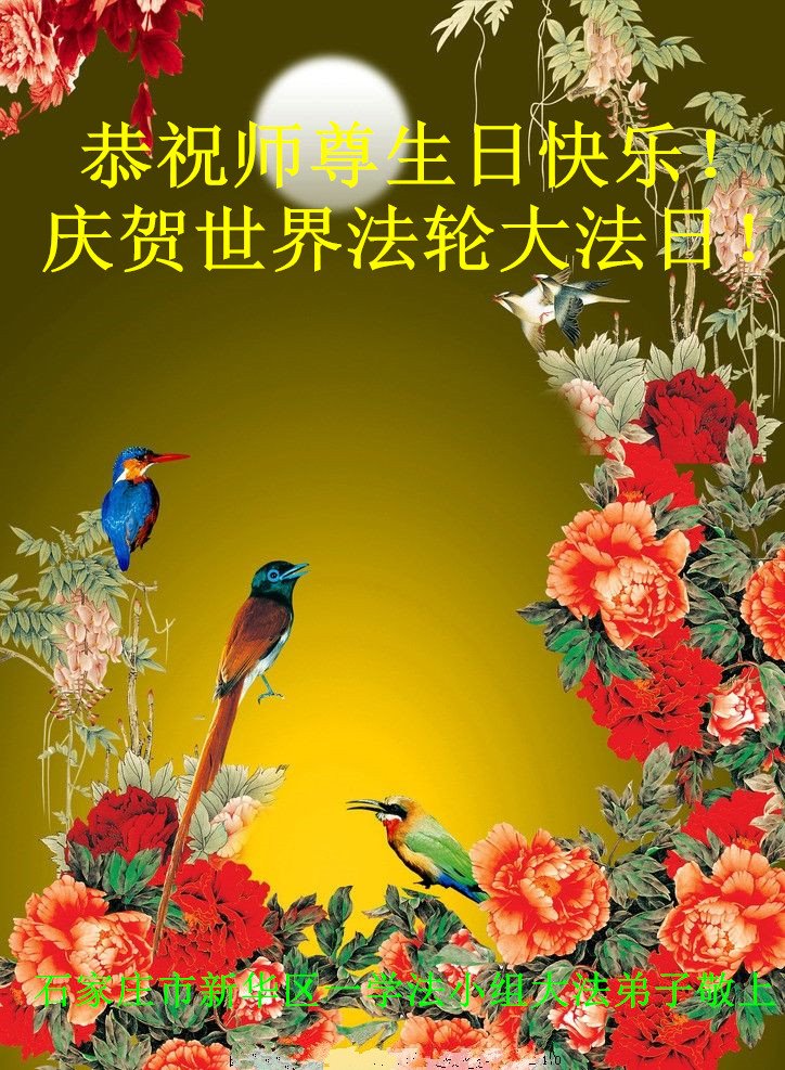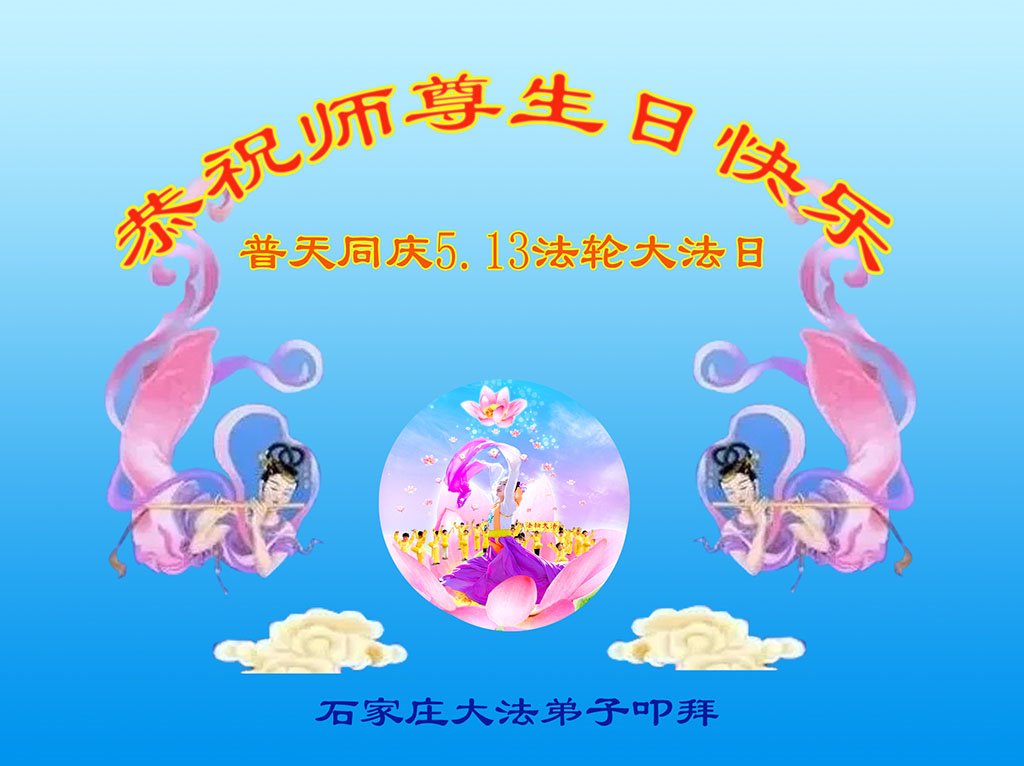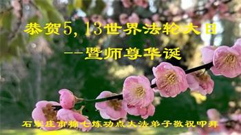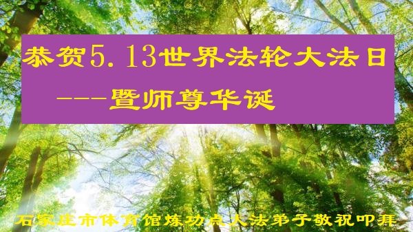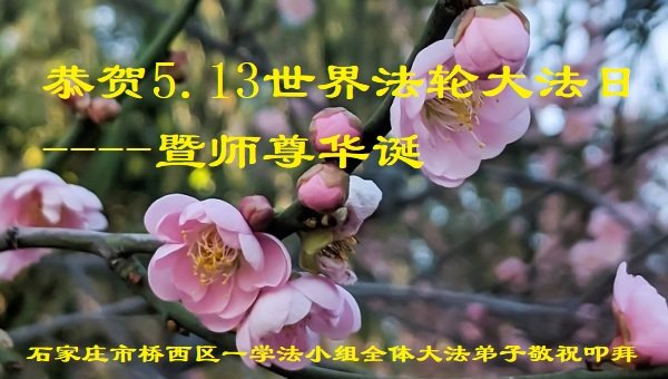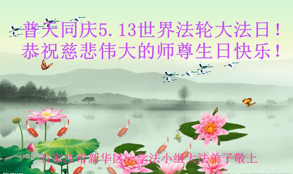 石家莊新華區一大法弟子恭祝慈悲偉大的師尊生日快樂!恭賀「五一三」世界法輪大法日!