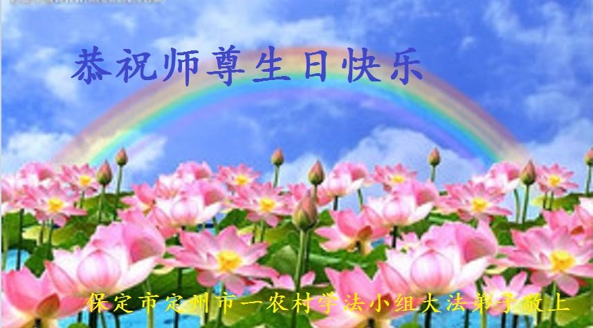 河北保定市定州市一農村學法小組大法弟子恭祝師尊生日快樂!