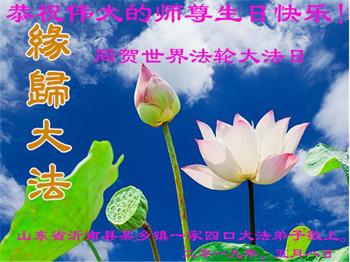 山東省煙台市棲霞市一鄉鎮全體大法弟子恭祝師尊華誕暨世界法輪大法日!