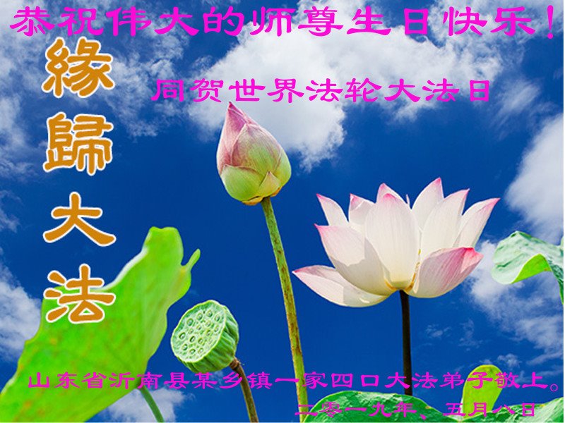 山東省臨沂市沂南縣某鄉鎮一家四口大法弟子恭祝師父生日快樂!同賀世界法輪大法日!