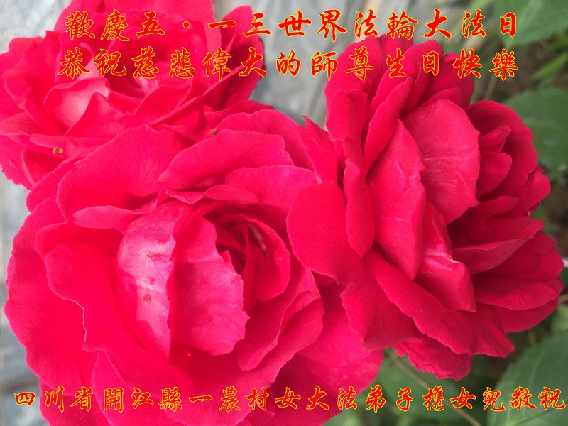 四川省達州市開江縣一農村女大法弟子同慶同祝同頌五﹒一三世界大法日!恭祝恩師生日快樂!