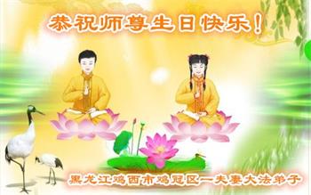 黑龍江雞西市雞冠區一母女大法弟子:恭祝師尊生日快樂!