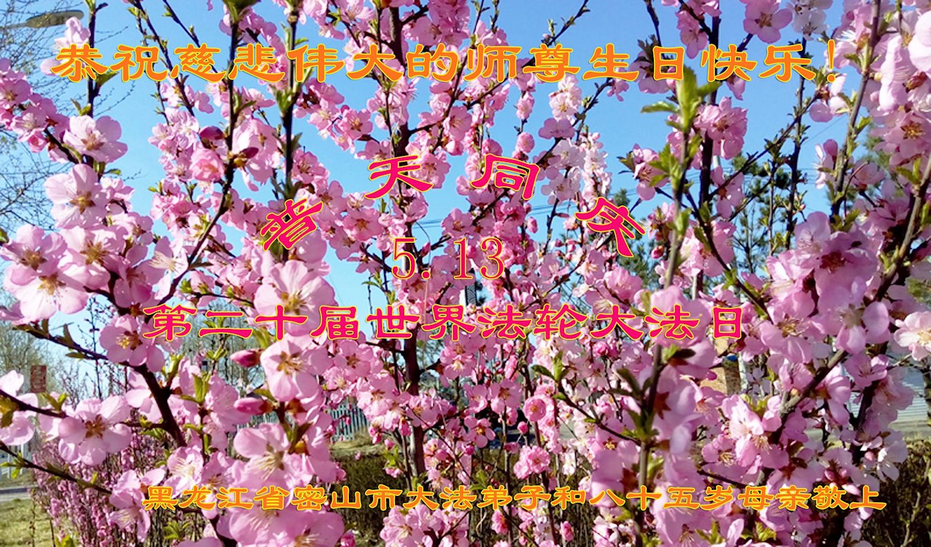 黑龍江省雞西市密山市大法弟子及85歲母親恭祝法輪大法日!