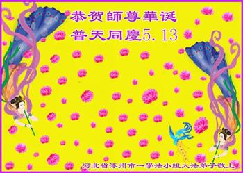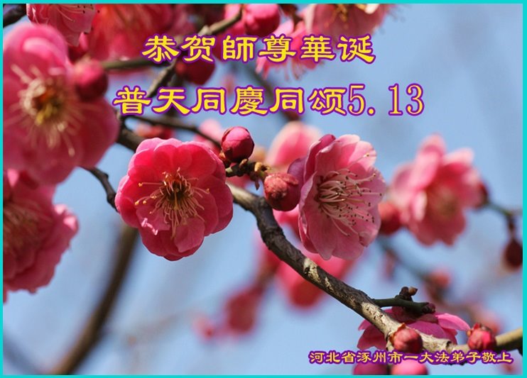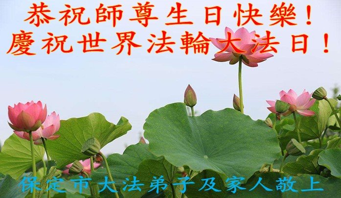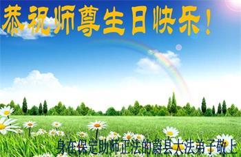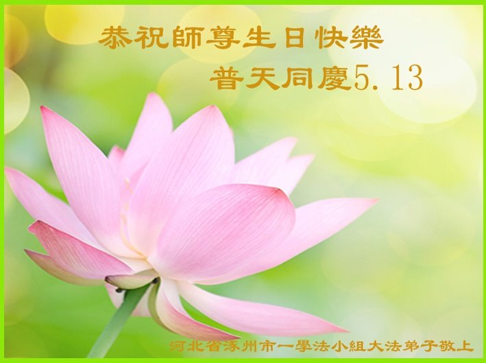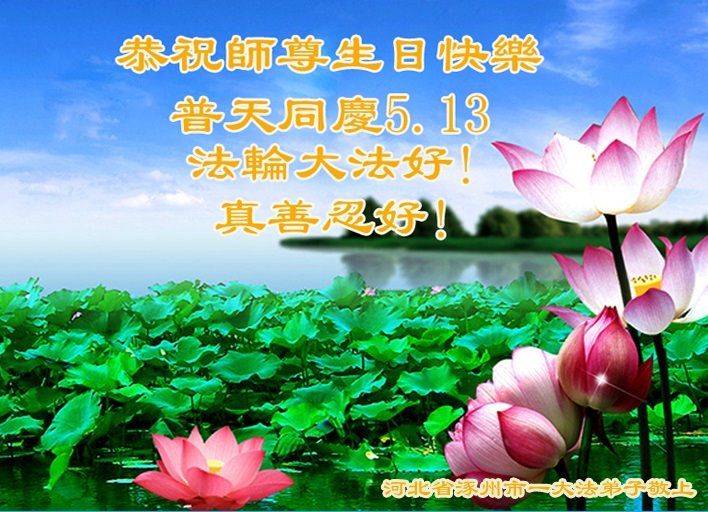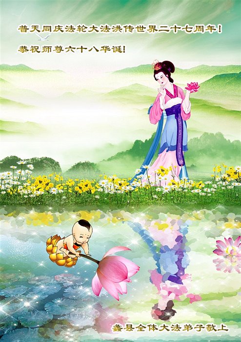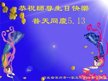 蠡縣全家三名大法弟子叩謝師父!恭祝師父生日快樂!普天同慶法輪大法洪傳世界二十七週年。