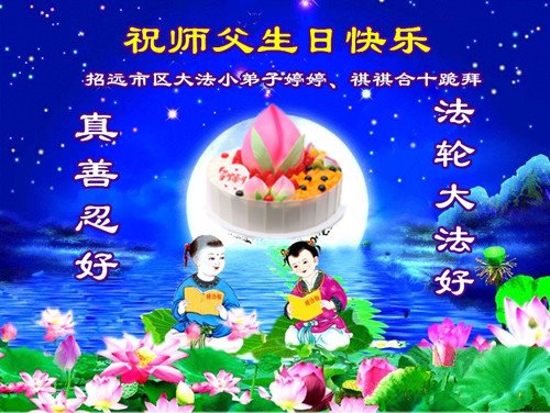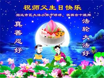 山東省煙台市招遠市大法弟子恭祝慈悲偉大的師父生日快樂!慶法輪大法日!