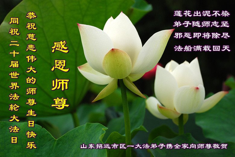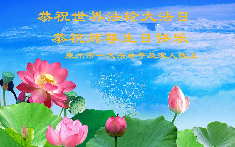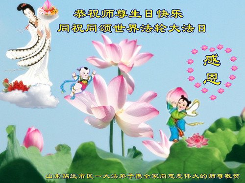 山東省煙台市萊州市一大法弟子及家人恭祝師尊生日快樂!恭賀世界法輪大法日!