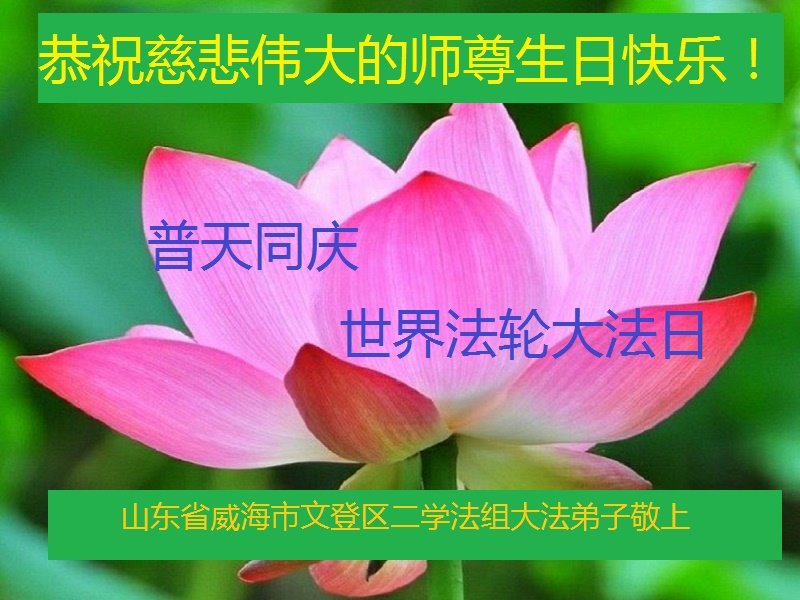 山東省威海市文登區二學法組大法弟子恭祝師尊生日快樂!