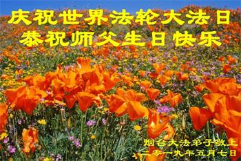 山東煙台大法弟子恭祝師尊生日快樂!普天同慶法輪大法日!