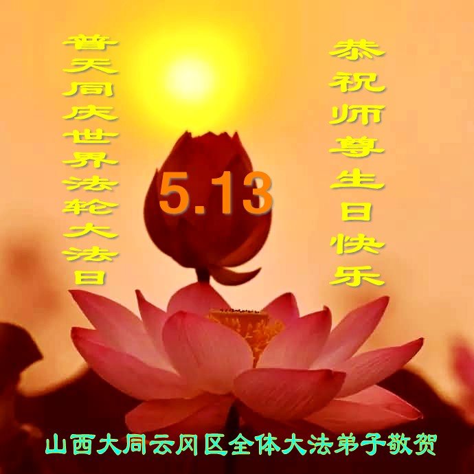 山西省陽泉市平定縣一大法弟子恭賀513世界法輪大法日!恭祝慈悲偉大的師尊生日快樂!弟子叩謝師父洪恩!