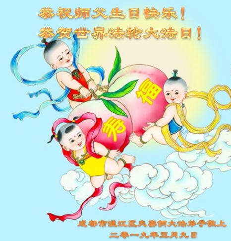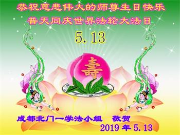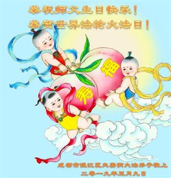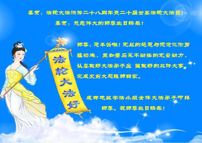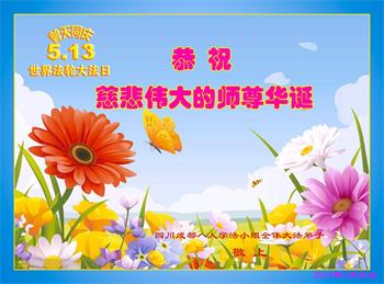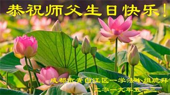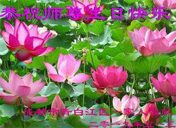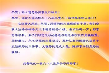 成都地區學法小組全體大法弟子叩拜師尊。祝師尊生日快樂!