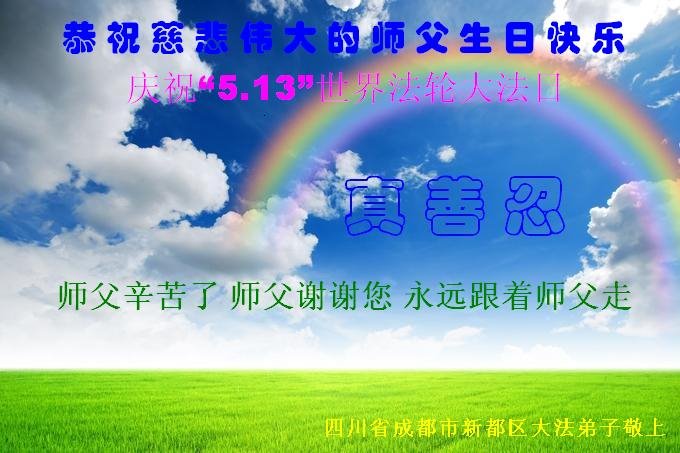 四川成都青白江全體大法弟子恭賀法輪大法洪傳世界二十七週年!普天同慶世界法輪大法日!師尊好!師尊辛苦了!感恩師尊的無量慈悲!感恩師尊的慈悲救度!感恩師尊的佛恩浩蕩!