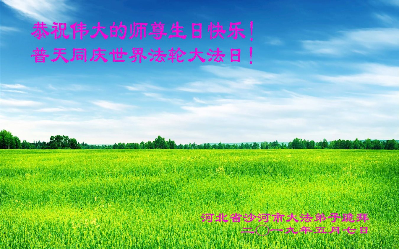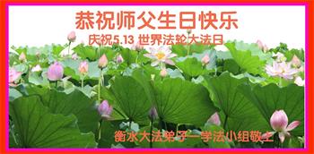 在5.13法輪大法日即將來臨之際,我們河間全體大法弟子向我們最最偉大的師父問好!叩拜師父生日快樂!師父您辛苦了!弟子們在這最後的時間裏,謹遵師命,多學法,多救人,兌現誓約,以報師恩。