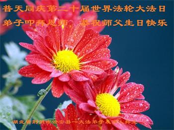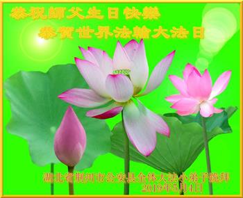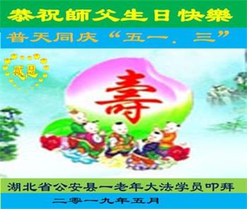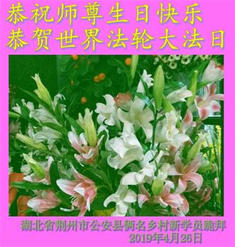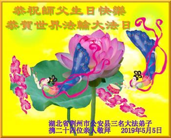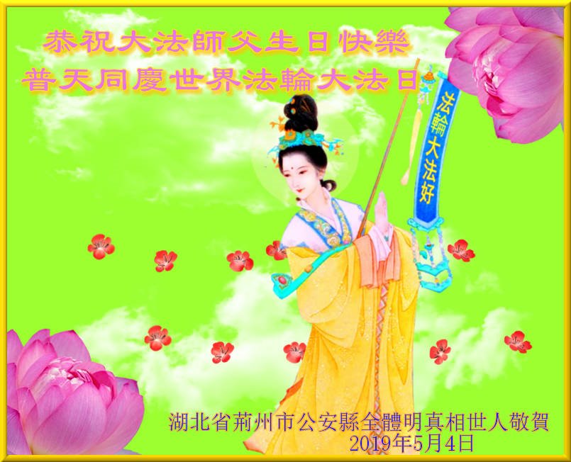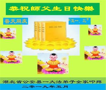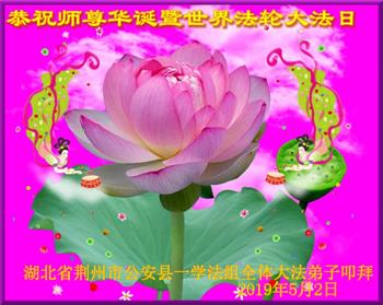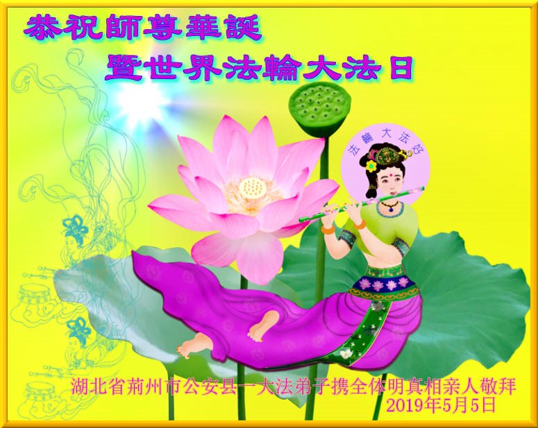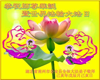 湖北省荊州市公安縣一大法弟子攜全體明真相親人恭祝師尊華誕暨世界法輪大法日!