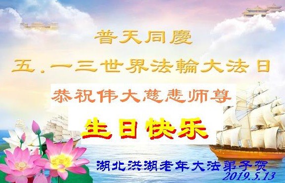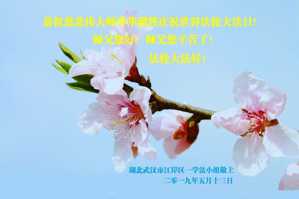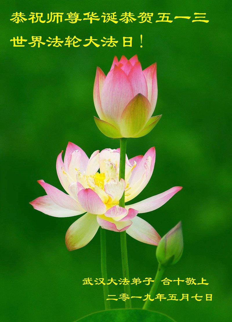 武漢市江岸區一學法組的大法弟子恭祝我們慈悲偉大的師父生日快樂!感恩師尊的慈悲苦度。普天同慶5.13世界法輪大法日!