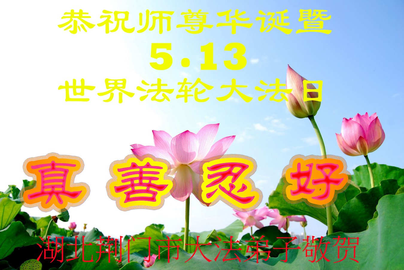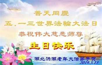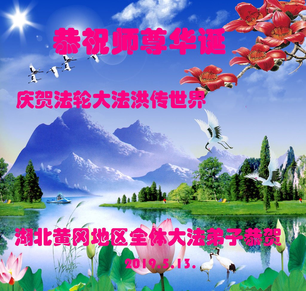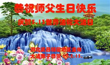 湖北省黃石市大法弟子恭祝師尊生日快樂!感謝師父慈悲救度之恩!恭賀第二十屆世界法輪大法日!慶祝法輪大法洪傳世界二十七週年!